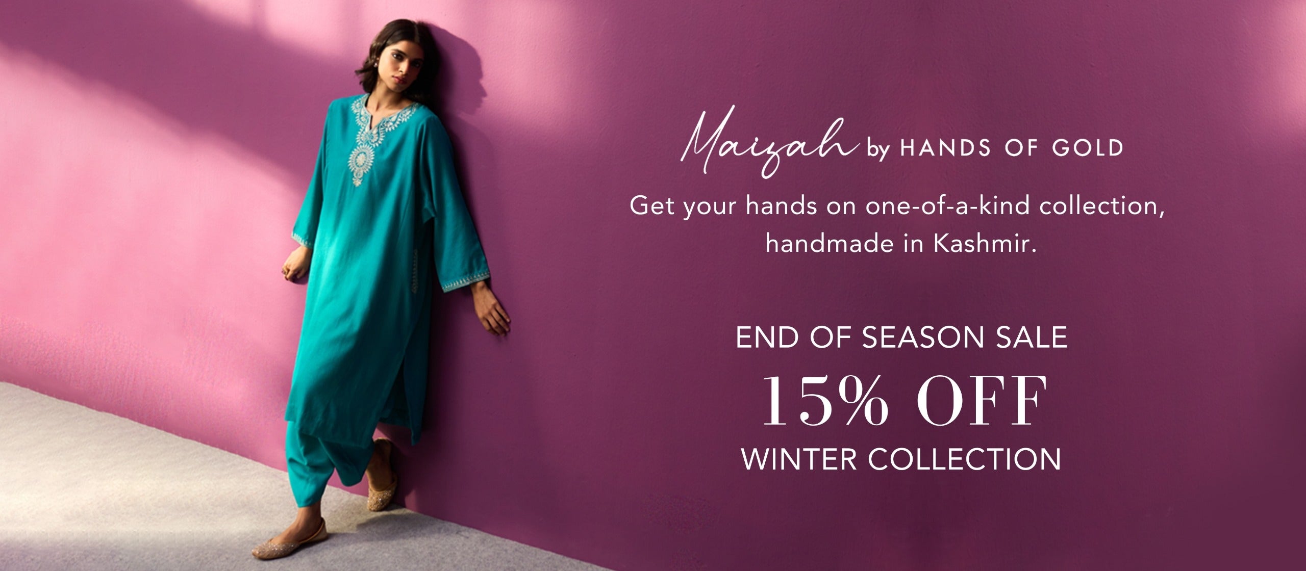 Maizah by Hands of Gold is a tribute to Kashmir’s rich heritage and timeless elegance, seamlessly blending traditional craftsmanship with contemporary design. Rooted in the heart of Kashmir, where nature’s beauty meets artisanal mastery, Maizah is a symbol of exclusivity and cultural regality.