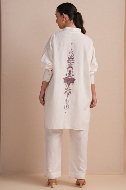 Linen High/Low Purple Embroidery Shirt Set